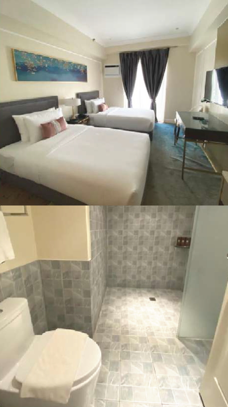 | NOBLE HOTEL CEBU セブ市内にあるラグジュアリーホテル(3.5星クラス)に2名1室で宿泊します。ホテルにはプログラムスタッフも常駐していて、緊急時の対応もOKです。 お部屋はエアコン、ミニ冷蔵庫、セーフティボックス、シャワー、トイレ完備。 ホテルにはプール、コンシェルジュディスクもあります。 |